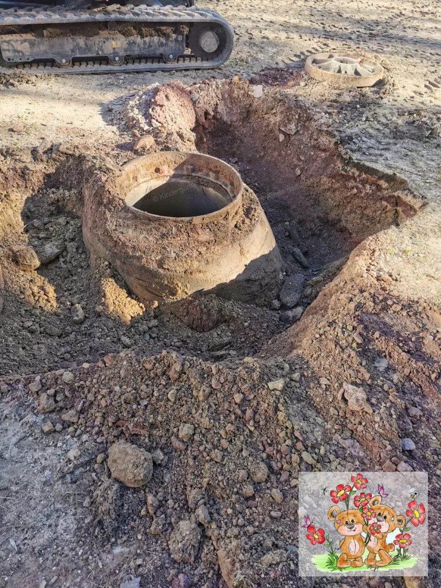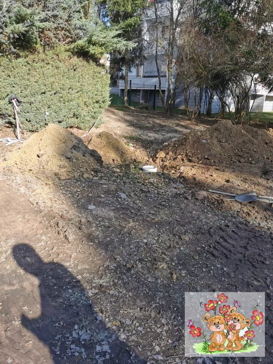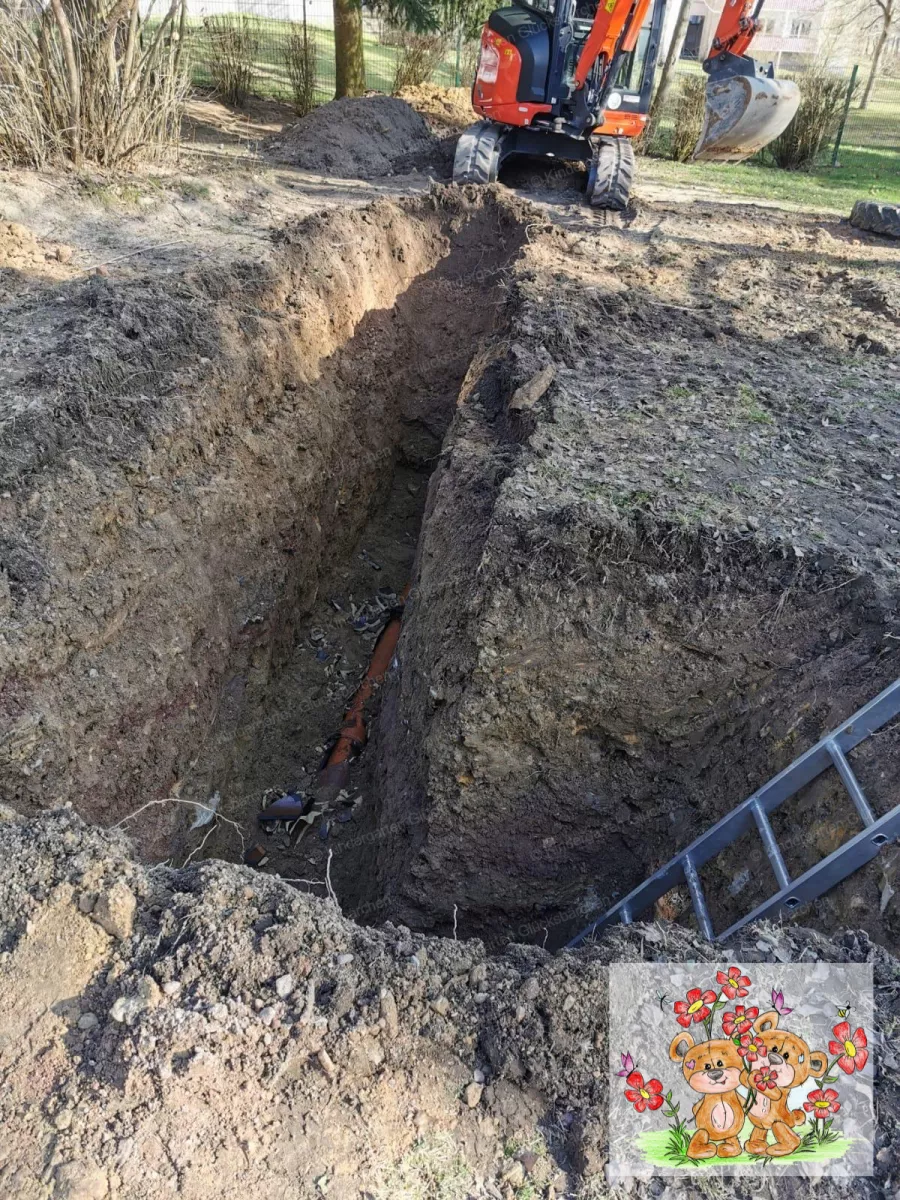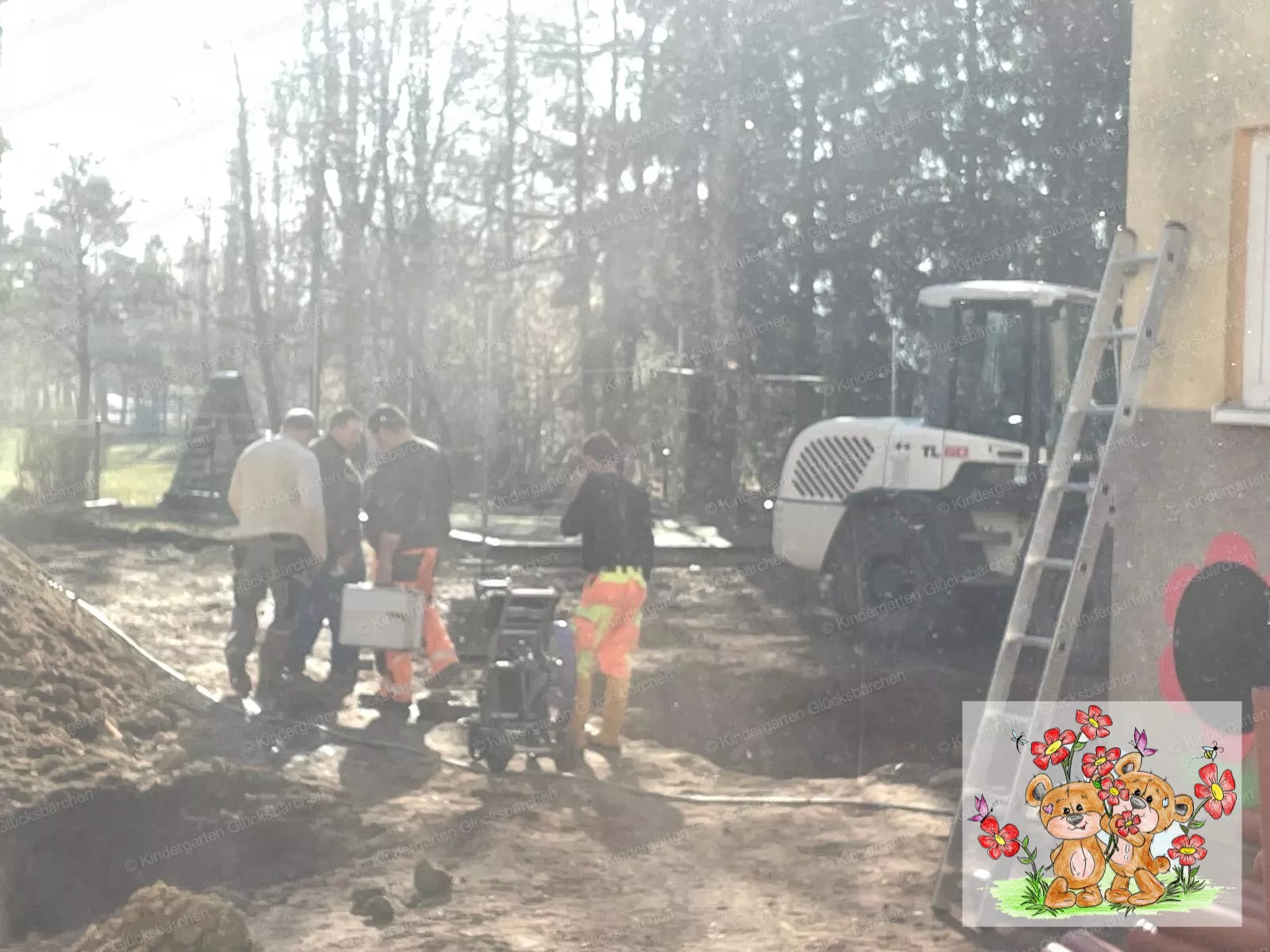 Es ist soweit – unser Spielplatz wird umgestaltet! Zunächst fanden wichtige Kanalarbeiten statt, bei denen die Firma Norman Dostal alle Abwasser- und Brauchwasserleitungen erneuert hat. Die Vorbereitungen für unserer großen Sonnensegel sind ebenfalls abgeschlossen. Jetzt freuen wir uns auf die bunten Pflastersteine, die bald unseren Spielbereich verschönern werden Wir warten auf besserers Wetter, damit die Pflasterarbeiten beginnen können.